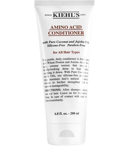 Een milde, dagelijkse conditioner. Gemaakt met tarweproteïnen en aminozuren voor een lichte en romige finish. Geeft het haar een gezond uitziende glans zonder het zwaar te maken. Helpt de natuurlijke vochtbalans van het haar te behouden, versterkt het haar en verbetert de vormbaarheid. Toepassing: Breng de Amino Acid Conditioner aan op haar dat eerder is gewassen met een Kiehl's shampoo die geschikt is voor jouw haartype en werk het zorgvuldig in met een kam, vooral in de punten. Enkele minuten laten inwerken en vervolgens grondig uitspoelen. ...
