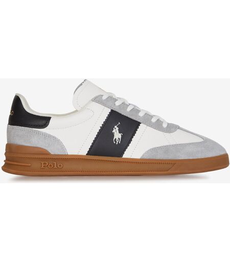 Ontdek de Polo Ralph Lauren Heritage Aera, sneakers die traditie en moderniteit combineren. Het bovenwerk van wit leer en grijs suède wordt verfraaid door een contrasterende zwarte band, die trots de iconische ruiter draagt. De rubberen gomzool zorgt voor comfort en stijl, perfect voor sneakerliefhebbers. ...