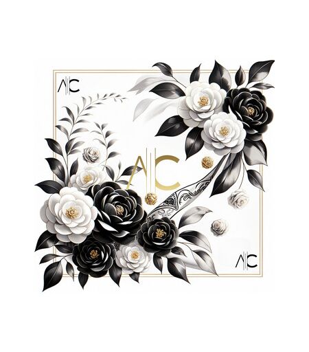 Alberto Cabale Sjaal Zijde vierkantje Black Roses Cléo Wit