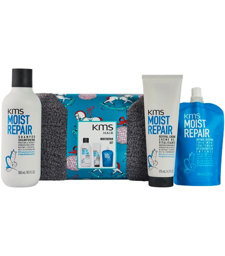 DE VERZORGING DIE JE HAAR VERDIENT. Verzorg je haar tijdens de koude wintermaanden en maak je schoonheidsroutine onvergetelijk met onze MOISTREPAIR set: De KMS MOISTREPAIR is ideaal voor droog, beschadigd en dof haar. Deze set bevat: 1 x Moistrepair Shampoo, 300 ml1 x Moistrepair Revival Crème, 125 ml1 x Moistrepair Intense Restore Treatment, 100 ml MOISTREPAIR SHAMPOO: - Herstelt beschadigde haarstructuren & vermindert haarbreuk en gespleten haarpunten tot 99%. - Vult vocht aan zonder het te verzwaren - Hydrateert diep en gewichtloos, zelfs zeer droog haar - Tot 3x makkelijker ontwarren - Versterkt & beschermt tegen beschadiging - 20x sterker haar MOISTREPAIR REVIVAL CRÈME: - Herstelt beschadigde haarstructuren en vermindert haarbreuk en gespleten haarpunten tot 99%. - Herstelt de natuurlijke beschermingskracht van het haar en verbetert de handelbaarheid - Herstelt de vochtbalans van het haar zonder het te verzwaren - Tot 4x makkelijker te ontwarren - Verbetert de elasticiteit tot 99% - Versterkt & beschermt tegen beschadiging MOISTREPAIR INTENSE RESTORE TREATMENT - Herstelt zelfs ernstig beschadigde haarstructuren van binnenuit tot 99%. - Bandenopbouwende formule, herstelt de proteïnestructuur die verantwoordelijk is voor de veerkracht van het haar - Bouwt bindingen op en herstelt ernstig beschadigd haar van binnenuit - 20x sterker haar - Herstelt de kracht van het haar met wel 99% - Herstelt & versterkt ernstig beschadigd haar van binnenuit - 4x makkelijker ontwarren - Hydrateert het haar diep - Versterkt & beschermt tegen beschadiging - Tot 99% minder beschadiging Toepassing: Shampoo - Aanbrengen op nat haar. Uitspoelen. Herhalen indien nodig. Intense Restore Treatment - Aanbrengen op gewassen haar en 3-5 minuten laten inwerken. Uitspoelen. Revival Crème - Aanbrengen op handdoekdroog of droog haar. Laten inwerken. ...