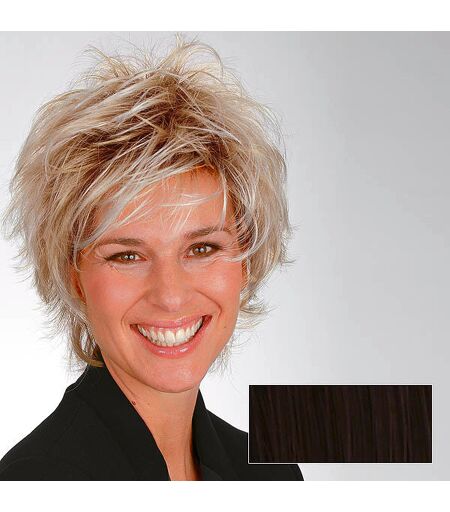 Haarlengte ca. 10 cm, maat verstelbaar bij de nek. Getrimde modepruik met langere nek en brutale getrapte top. Het absolute trendkapsel voor de modebewuste dame! ...