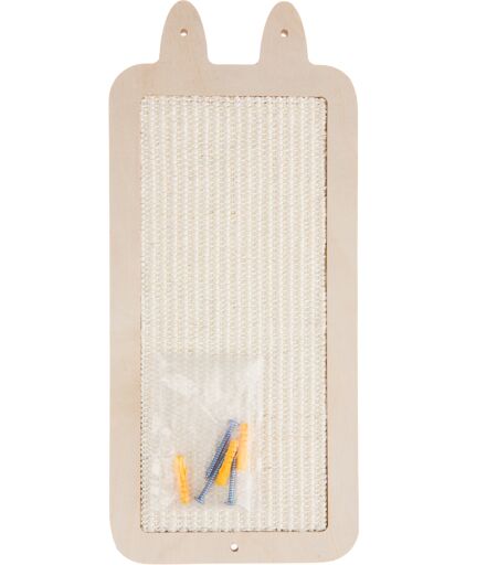 Krabplank in houten frame voor katten. Lange sisalmat om te krabben. Eenvoudige montage aan de muur. Ideaal voor kleine ruimtes. Eenvoudig ontwerp met grappige kattenoren. Kleur: natuurlijk hout. ...