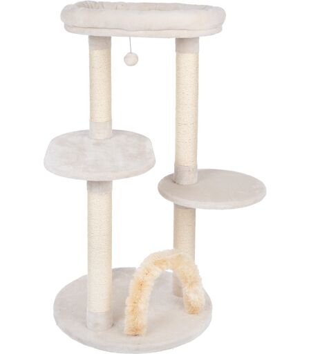 Tijdloze krabpaal voor katten, grote knuffelmand lange sisalstammen voor nagelverzorging, gebogen massageborstel, bekleed met zacht pluche, inclusief speelbal, afmetingen: H 118 x L 75 x B 63 c ...