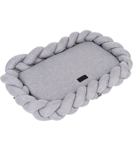 Decoratieve hondenmand, met zachte polyvezelvulling, biedt veel comfort, met uitneembaar binnenkussen, mooie gevlochten rand met donzige look, met chic logo, wasbaar, kleur: grijs ...