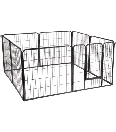 Stabiel puppyhek uit 8 gelakte metalen elementen, diverse opbouwmogelijkheden, snel op- en afbouwen, kleur: zwart / zilver. - Totaal afmetingen: L 211 x B 211 x H 80 cm ...
