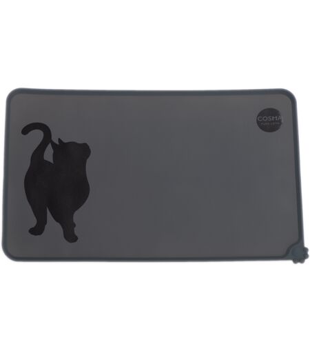 Mooie placemat van siliconen, ideale voerbakonderzetter. Design met Cosma kattensilhouet, buigzaam, antislip, vaatwasmachinebestendig, geschikt voor levensmiddelen licht opstaande rand, kleur: grijs ...