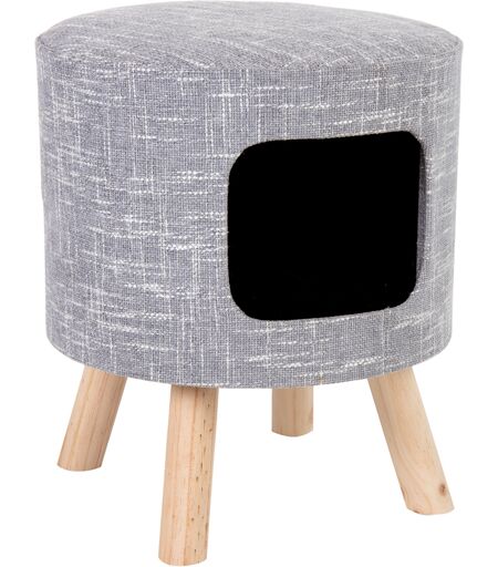 Combinatie van knuffelgrot en kruk, trendy design met bekleding van meubelstof, gezellige grot met afneembaar pluche kussen, gestoffeerde zitting, stevig, belastbaar tot 80 kg, kleur: grijs ...
