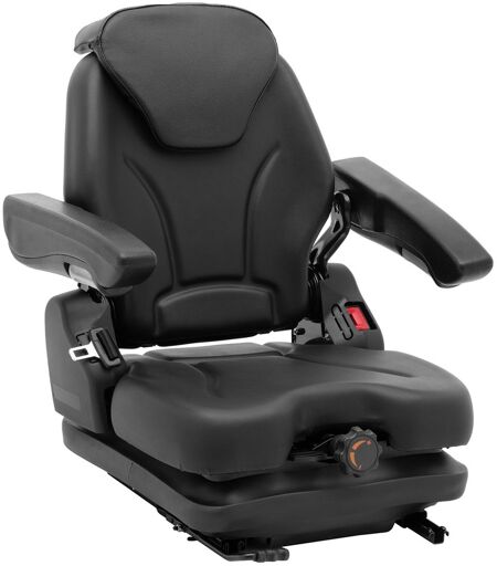 Dankzij zijn royale afmetingen en eersteklas bekleding zit u ook over lange afstanden comfortabel op de tractorstoel van Hillvert's landbouwvoorraden. Met geselecteerde materialen en solide afwerking is de bestuurdersstoel ideaal voor tractoren of grasmaaiers; maar ook heftrucks of andere machines verrijk je gemakkelijk met deze comfortabele universele stoel. Om de rug niet te belasten, raden wij aan om een tractorstoel na ongeveer 1000 werkuren te vervangen. Met de universele en eenvoudig te installeren heftruckstoel van hillvert voert u zo'n vervanging snel en eenvoudig uit. De schuimvulling behoudt zijn vorm, zelfs bij zware belasting. Ook na veelvuldig gebruik is comfort gegarandeerd op het ruime model met een zitting van 46 x 46 cm en een laadvermogen van 130 kg. Net als de lange levensduur van de tractorstoel, waarvan de stabiele frameconstructie van staal is. Het oppervlak van polyvinylchloride (pvc) is bijzonder robuust en tegelijkertijd gemakkelijk schoon te maken. Deze tractorstoel laat niets te wensen over: met 50mm hoge vering en comfortabele armleuningen zit je zeer comfortabel. Om dit model aan uw individuele behoeften en lengte aan te passen, schuift u de hele stoel in totaal 16.5 cm naar voren of naar achteren. Verstel de rugleuning in een hoek van 30 - 75°. De hoofdsteun is ook in hoogte verstelbaar met 140 mm, voor maximaal comfort. Een veiligheidsgordel maakt de uitrusting van dit model compleet. De stoel past universeel op verschillende voertuigen. Let echter op de afmetingen van de montageplaat met 28,5 x (27~)28,5 cm. Indien deze afmetingen niet passen bij het gewenste voertuig, vindt u alternatieve heftruckstoelen in ons assortiment onder de categorie tractoraccessoires. Je voert de installatie snel en intuïtief uit; Meer informatie over de veilige bevestiging van het zitje vindt u eventueel in de gebruiksaanwijzing. ...