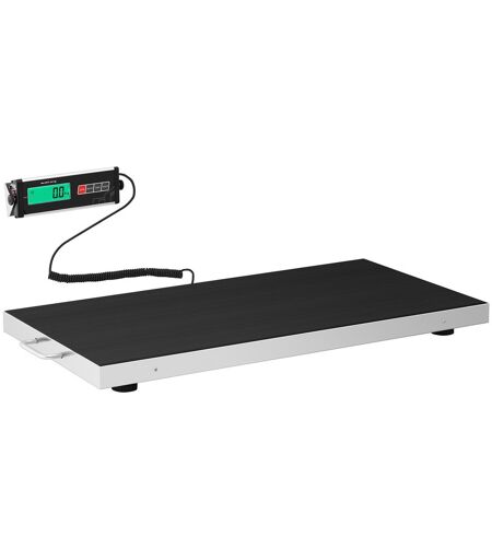 De vloerweegschaal van Steinberg Systems is een verademing overal waar u zware lasten slechts een klein stukje wilt tillen om te wegen. Met een capaciteit van 300 kg en een nauwkeurigheid van 100 g kunt u de industriële weegschaal zowel in het magazijn als in de groothandel of in de handel gebruiken. Dankzij de antislipmat en een geïntegreerde diermodus bepaal je bovendien nauwkeurig het gewicht van dieren. De platformweegschaal wordt vooraf gekalibreerd bij u afgeleverd en is direct klaar voor gebruik. Het weegoppervlak van 95 x 50 cm biedt voldoende ruimte voor nog grotere voorwerpen. Dankzij het slanke ontwerp neemt de weegschaal niet meer ruimte in beslag dan absoluut noodzakelijk. Met de tarra-, nul- en eenheidswijzigingsfuncties (kg, lb of oz) kunt u alle relevante magazijnprocessen optimaal afdekken. De Dierenmodus compenseert automatisch bewegingen; Een antislipmat maakt het mogelijk om zelfs onrustige dieren te meten. Voor nauwkeurige resultaten op oneffen oppervlakken kunt u ook de hoogte van de poten van de dierenartsweegschaal aanpassen. Het externe LC-display met bedieningspaneel en achtergrondverlichting maakt het gemakkelijker om de gemeten waarden in donkere omgevingen af te lezen. De vloerweegschaal demonstreert zijn energiebesparende eigenschappen bij batterijgebruik met een looptijd van maximaal 30 uur. Na 120 s inactiviteit schakelt de weegschaal automatisch uit om energie te besparen. Alarm voor lage batterijspanning voorkomt apparaatstoring tijdens gebruik. Via de RS-232-interface brengt u de verzamelde gegevens over naar uw computer. ...