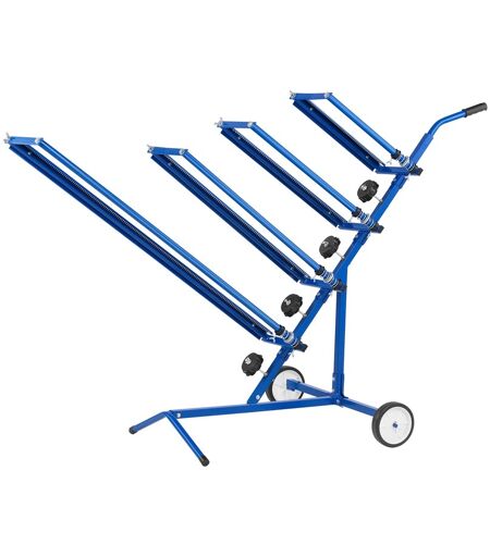 De Papier standaard MSW-MT-100 van MSW biedt ruimte aan vier rollen folie of papier met een lengte van 30, 45, 60 en 100 cm. Met twee grote wielen belooft de Maskeerpapierstandaard een hoge mate van flexibiliteit en is daarom ideaal voor gebruik in spuiterijen en overal waar papier snel en vakkundig moet worden bekleed. De Papieren dispenser is gemakkelijk te gebruiken. Het mechanisme van de rolhouder is gebruiksvriendelijk en garandeert een snelle en gemakkelijke rolwissel. De scherpe mesjes zorgen voor een perfecte afscheuring - ook door dik papier of dunne film. Met vier houders en tapedispensers zijn verschillende verpakkingsmaterialen parallel beschikbaar en maken een efficiënte workflow mogelijk. De tape kan ook rechtstreeks op het papier worden bevestigd. Dankzij de twee grote wielen en de kleine afmetingen is de Papieren dispenser ook heel gemakkelijk te manoeuvreren en overal beschikbaar waar je hem nodig hebt. De robuuste constructie van staal is extreem veerkrachtig en duurzaam, zelfs onder uitdagende omstandigheden. Zorg voor een efficiënte materiaallevering precies daar waar papier wordt afgeplakt en kies voor de Papier standaard MSW-MT-100 van MSW! ...