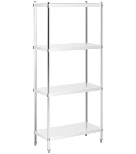 Of het nu in restaurants, hotels, supermarkten of thuis is, de Stellingkast RCER-8040 van Royal Catering is een must voor elke opslagruimte. De hygiënische en stabiele plank is geschikt voor het opbergen van een breed scala aan dingen, van voedsel tot gereedschap, en is bestand tegen hoge belastingen. Of het nu voor professioneel of privégebruik is, de Stellingkast is perfect voor jou! De keuken plank heeft de afmetingen 80 x 40 x 180 cm en is daarom ideaal voor horecakeukens of opslagruimtes. Dankzij een draagvermogen van 50 kg per plank kunnen veel keukengerei tegelijk worden opgeborgen. Over het algemeen heeft de Gastronomisch 4 verdiepingen. Dankzij de constructie van roestvrij staal is de Zware plank niet alleen extreem stabiel en duurzaam, maar ook bijzonder onderhoudsvriendelijk. roestvrij staal is corrosiebestendig en gemakkelijk te reinigen. Bovendien voldoet het aan de hoogste gastronomische standaard, waardoor het bewaren van voedsel geen probleem is. De zilveren kleur geeft de Opslag rek een bijzonder stijlvolle uitstraling en is geschikt voor gebruik in alle mogelijke ruimtes, van restaurants tot hotels en privéruimtes. De Stellingkast is heel eenvoudig in te stellen, er zijn geen verdere hulpmiddelen nodig. ...