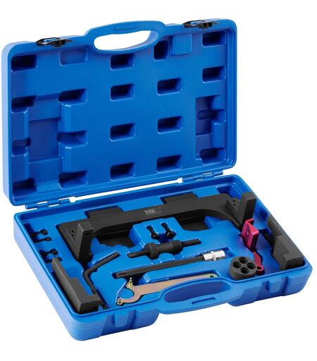 Als u een BMW-automotor wilt repareren: Met de Motor gereedschap van MSW zijn de experts voor hoogwaardig autogereedschap, het instellen en vergrendelen van de motor en het controleren en instellen van de klepbediening eenvoudiger Hand . De meegeleverde componenten maken de multifunctionele Distributiekettinggereedschap de ideale metgezel in garages en werkplaatsen. Met de Vergrendelingstool kunt u zelf ingewikkelde werkzaamheden aan de nieuwe generatie modulaire BMW benzinemotoren uitvoeren, bijvoorbeeld op de BMW B38, B48 en B58. Dit professionele gereedschap is qua pasvorm optimaal afgestemd op de bijbehorende motorelementen en daardoor eenvoudig in gebruik. De Motor gereedschap garandeert de meest efficiënte methode voor het bevestigen en afstellen van de motor. Werken met ander in de handel verkrijgbaar gereedschap kan motoronderdelen beschadigen en de gebruiker zelf verwonden. Daarnaast werk je met de toolset van MSW met zeer weinig slijtage. Het gereedschap van resistent en duurzaam koolstofstaal zal u jarenlang trouwe dienst verlenen en mag daarom in geen enkele professionele autowerkplaats of ambitieuze hobbyschroevendraaier in de garage ontbreken! En als u naar klanten gaat met de Distributiekettinggereedschap of deze niet in gebruik is, bergt u alle gebruiksvoorwerpen gewoon netjes en veilig op in de polyethyleen transportkoffer. Zo heb je altijd orde in de werkplaats en is alles binnen handbereik zodra het gereedschap nodig is. ...