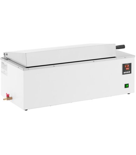 Precies getemperd en gemakkelijk te gebruiken: met dit digitale waterbad kunt u allerlei soorten monsters voorzichtig verwarmen. Of het nu in onderwijsinstellingen, laboratoria of in de medische omgeving is - met Steinberg Systems zorgt u voor hoogwaardige basisuitrusting in het laboratorium. Het waterbad voor laboratoria en onderzoeksfaciliteiten verwarmt continu en gelijkmatig de gebruikte monsters. Gebruik de precieze thermostaat om het gewenste temperatuurbereik van 5 - 100 °C in te stellen. De optimale temperatuurverdeling van het waterbad voorkomt een plotselinge verandering van koud naar warm. Dankzij de verschillende inzetstukken en monsterhouders kunt u het bad aanpassen aan uw toepassingsgebied. Zo creëer je met een plat deksel en ringelementen een veilige houder voor 2 flessen of containers in het waterbad. Het laboratorium waterbad heeft een bedieningspaneel met een LED-display waarop de ingestelde parameters duidelijk worden weergegeven. De intuïtieve bediening maakt het voor u gemakkelijker om met allerlei soorten samples te werken. Het 2280 W krachtige laboratorium waterbad is gemaakt van robuust roestvrij staal. De componenten zijn eenvoudig te reinigen en te onderhouden. ...