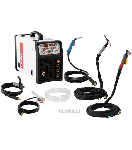 Elk lasproject is een uitdaging, met het combinatielasapparaat TRON 200 ONE van welbach heb je voor elke situatie het juiste antwoord. Of u nu met MIG/MAG-draad lassen, nauwkeurige lasnaden met TIG-lassen bereikt of buiten lassen met een elektrode, alle lasmethoden kunnen eenvoudig en effectief worden uitgevoerd met het multi-weld-apparaat. Maar ook als plasmasnijder toont de alleskunner zijn krachtige eigenschappen met een moderne IGBT-omvormer. Alle lasmethodes regel je op het overzichtelijke, digitale bedieningspaneel met twee leds, waarop je nooit het overzicht verliest. Naast de lasmethodes en basisinstellingen voor de lasstroom en de gasvoor- of nastroomtijd heeft u de beschikking over professioneel vooraf ingestelde parameters waarmee u de beste resultaten bereikt. Of gebruik de synergiefunctie, waarbij je een waarde instelt waarop de anderen dienovereenkomstig worden aangepast. Gebruik voor MIG/MAG-lassen draadspoelen tot 200 mm voor lange lastijden. De draadaanvoer is ontworpen voor draden met een diameter van 0,8 - 1,2 mm. Regel de draadsnelheid vanaf 2-15 m/min en bereik altijd de beste resultaten met inert gas lassen. Las met TIG DC con gas de protección desde varias posiciones. Hasta 200 A. Bajo 110 A sin interrupción. Para chapas de 0,5 mm activa pulso y une casi todos los metales como acero, inox, cobre o níquel. Met de plasmatoorts snijd je gemakkelijk door metalen tot 15 mm dik met een maximale lasstroom van 50 A. De plasmaboog wordt opgewekt met perslucht, die de toorts tijdens het snijden afkoelt en een zuivere snijrand achterlaat. Kies net als bij gasbeschermde lasmethoden voor 2-takt of 4-takt voor uw snijklus. Las u buiten en bij harde wind? Kies dan voor elektrodelassen (MMA). De methode werkt zonder extra gas. Het lasapparaat levert een zeer stabiele stroom - ideaal voor goede lasresultaten. De VDR-functie zorgt voor meer veiligheid bij MMA-lassen, vooral in vochtige omgevingen. Dankzij de hot-start-functie bereikt u bij het starten van het lasproces gedurende korte tijd een verhoogde lasstroom, zodat u vanaf het begin stabiel en schoon kunt lassen. ...