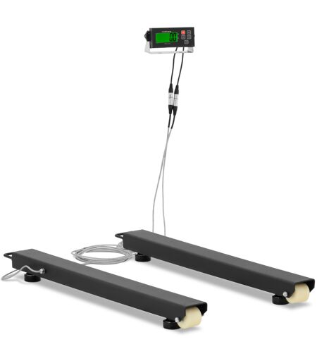 Niet elk object heeft de optimale vorm voor een vloerweegschaal. Met de weegbalken van Steinberg Systems kunt u het weegoppervlak aanpassen aan de meest uiteenlopende wensen: of het nu gaat om pallets in speciale maten, boomstammen of andere oneffenheden. Dit maakt de balansbalans bijzonder geschikt voor de speciale eisen in de handel, industrie of bos- en landbouw. Dankzij het aparte LCD-display kun je de heavy-duty weegschaal flexibel gebruiken. De digitale weegschaal van Steinberg Systems toont waarden vanaf 10 kg met een verdeling van 500 g. De meetwaarden lees je eenvoudig af op het externe LCD display met achtergrondverlichting. Je kunt het display eenvoudig op de weegschaal aansluiten met behulp van snelkoppelingen en een 5 meter lange kabel van 100 x 10 cm zijn gemaakt van robuust koolstofstaal. Afhankelijk van de positie op de vloer kunt u het weegoppervlak vergroten of verkleinen. De pootjes, die 9 mm in hoogte verstelbaar zijn, garanderen een veilige stand en nauwkeurige meetresultaten, zelfs op oneffen oppervlakken. Voor het meten biedt deze weegschaal u praktische functies zoals vasthouden, kalibreren, tarreren en dynamisch wegen (dierweegmodus). Ook kunt u kiezen tussen de eenheden kg en lb. U kunt de mobiele weegschaal bedienen met de meegeleverde voeding of met oplaadbare batterijen. Dit model toont een verbazingwekkend uithoudingsvermogen met een looptijd van maximaal 20 uur. Om energie te besparen schakelt het apparaat na 180 seconden inactiviteit automatisch uit. Last but not least beschikt deze weegschaal over een RS232-poort voor het overbrengen van gegevens naar uw pc of printer. ...