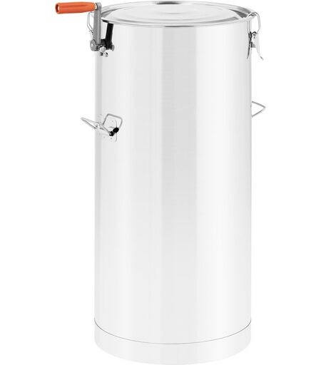 De honingslinger is een van de belangrijkste gereedschappen van een imker. De handmatige diagonale extractor van Wiesenfield's imkerij heeft 2 kammen en is ideaal voor honingproductie op kleine of particuliere schaal. Diagonale extractors zoals het model WIHE-02201 laten de honing gemakkelijk wegvloeien en halen grotere kammen eruit. Dankzij de capaciteit van 2 kammen met een maximale afmeting van 245 x 430 mm kan de oogst in een paar centrifugebeurten worden voltooid. De grote komdiameter genereert voldoende centrifugaalkrachten voor het efficiënt centrifugeren van de honing uit de kammen. De honingextractor 2 kammen wordt handmatig bediend met behulp van een handslinger van gehard staal, waarmee ook de snelheid van de extractor kan worden geregeld. Centrifugaallichaam en honingraatmand zijn gemaakt van hoogwaardig roestvrij staal en voldoen aan de eisen van hygiënische honingproductie. Het materiaal is ook bijzonder duurzaam en gemakkelijk te reinigen na gebruik. De RVS honingzuiger staat wat hoger op drie stabiele poten, waardoor het vullen van de honing makkelijker wordt. ...