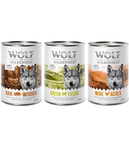 6x 400g Adult Mix III (3 soorten) Wolf of Wilderness natvoer voor honden