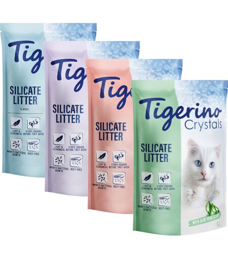 6x5L Gemengd Probeerpakket Tigerino Crystals Kattenbakvulling