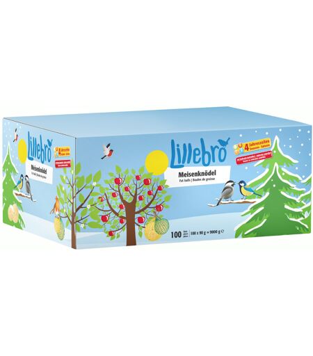 100 stuks à 90g Winter-Mezenbolletjes (zonder net) in doos Lillebro Vogelvoer