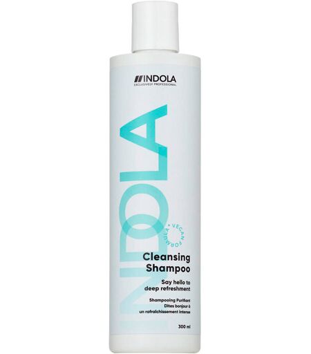 INDOLA Cleansing Shampoo met eucalyptusextract reinigt het haar grondig en verwijdert onzuiverheden en productopbouw. Het verfrist het haar en de hoofdhuid zonder het droog aan te laten voelen - voor perfect gerevitaliseerd haar en hoofdhuid. Veganistische formule*. *Vrij van dierlijke ingrediënten. Toepassing: Breng de reinigende shampoo aan op nat haar en werk in. Grondig uitspoelen en herhalen indien nodig. ...