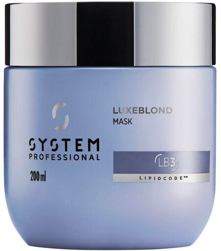 Regenererend masker voor koel blond dat onmiddellijk gele tinten neutraliseert en het haar diep van binnenuit herstelt. Tot 84% meer versterking tegen haarbreuk*.Tot 83% gladder haar na slechts één gebruik*.Voor koel getint, hersteld haar dat gezond aanvoelt. *in vergelijking met licht conditionerende shampoo Gebruiksaanwijzing: Gelijkmatig aanbrengen op handdoekdroog haar. 5 minuten laten inwerken en grondig uitspoelen. Wekelijks gebruiken. De LuxeBlond lijn helpt de haarvezel van binnenuit te herstellen en neutraliseert onmiddellijk ongewenste warme ondertonen. Samen bestrijden de formules van LuxeBlond de grootste problemen met verlicht haar - voor gladder, koeler blond haar, versterkt tegen haarbreuk. Schoonheid geboren uit wetenschap. Sinds de lancering van het merk in 1974 heeft System Professional altijd de wetenschap gebruikt om een essentiële haarverzorgingsvraag te beantwoorden: Wat is de beste oplossing voor transformerende haarverzorging? Het antwoord: langdurige, diepgaande oplossingen die gebruik maken van deskundige kennis om stylisten en hun klanten in staat te stellen precies de gewenste haarresultaten te bereiken. Wij geloven dat transformerende haarverzorging bij de kern begint. Daarom hebben onze wetenschappers de kracht van lipiden ingezet en de gepatenteerde LipidCode™ ontwikkeld. Een absolute spitstechnologie die het haar diepgaand regenereert, waardoor het merkbaar gezonder en veerkrachtiger wordt. Onze unieke producten combineren luxueuze texturen met inspirerende geuren - om u een ervaring voor alle zintuigen te bieden. Uw haarverzorging wordt een echt feel-good ritueel. Elke dag opnieuw. Wij creëren haarregeneratie met één doel: het haar verfraaien, uw ambities versterken en u het vertrouwen geven om uzelf elke dag te overtreffen. ...