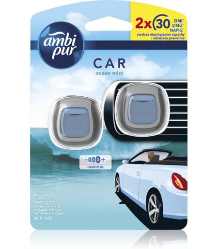 AmbiPur Car Ocean, 2x2 ml, Luchtverfrisser Auto Huisgeuren, Autoparfum AmbiPur Car Ocean maakt van je reis een onvergetelijke ervaring. Het maakt het interieur van elk voertuig aangenaam en zorgt zo voor een harmonieuze omgeving. Kenmerken: frisse geur frisse schone geur Hoe te gebruiken: Volg de bijgevoegde instructies. ...