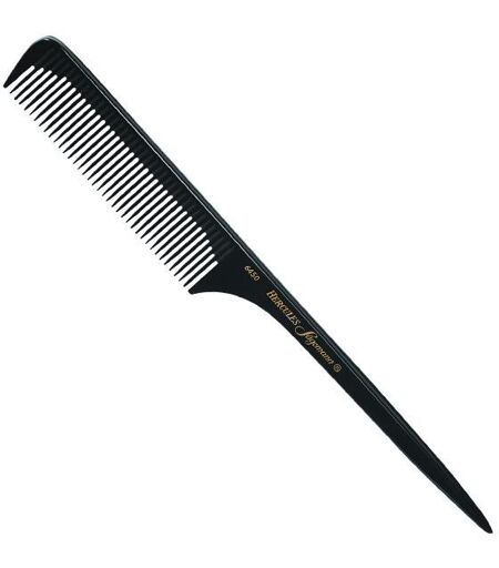 9½", ovaal handvat, extra brede tanden, facetgeslepen rug. De Original-Sägemann werkkammen - gemaakt van natuurrubber en hoogwaardig hardrubbermengsel - zijn absoluut haar- en hoofdhuidvriendelijk. Ze zijn aan alle zijden met de hand afgewerkt, hoogglans gepolijst en glijden zacht en gemakkelijk door het haar. Zij hebben technisch hoogwaardige, gezaagde en fijn geslepen tanden, afgeronde, braamvrije tandpunten en flanken. Het niet-poreuze oppervlak garandeert hygiëne, is bestand tegen alle haarbehandelings- en verzorgingsproducten en is hittebestendig. De kammen zijn vormvast en elastisch. Ze hebben een constante kwaliteit! ...
