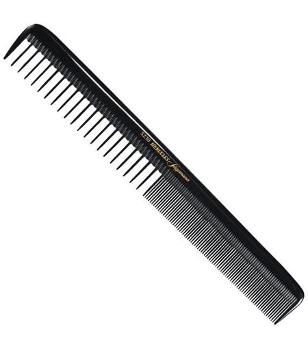 8½", de ene helft extra breed vertand, de andere helft met strengvertanding. De Original-Sägemann werkkammen - gemaakt van natuurrubber en hoogwaardig hardrubbermengsel - zijn absoluut haar- en hoofdhuidvriendelijk. Ze zijn aan alle zijden met de hand afgewerkt, hoogglans gepolijst en glijden zacht en gemakkelijk door het haar. Zij hebben technisch hoogwaardige, gezaagde en fijn geslepen tanden, afgeronde, braamvrije tandpunten en flanken. Het niet-poreuze oppervlak garandeert hygiëne, is bestand tegen alle haarbehandelings- en verzorgingsproducten en is hittebestendig. De kammen zijn vormvast en elastisch. Ze hebben een constante kwaliteit! ...