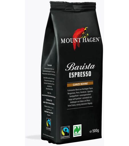 en intense cacao- en notensmaken. De afdronk is aangenaam kruidig, met een lange nasmaak en een bijzonder lage zuurgraad. 500 g hele bonen worden geleverd in een aluminiumvrije verpakking. Mount Hagen betrekt uitsluitend fairtrade koffie en steunt zo de kleine koffieboeren in de landen van herkomst. ...