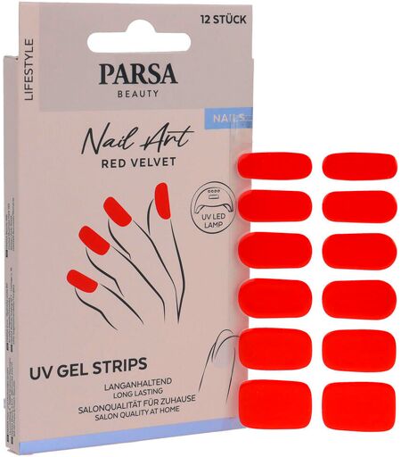 De UV Gel Strips Red Velvet van PARSA Beauty zorgen in een handomdraai voor langhoudende, verzorgd uitziende nagels - net als in de salon. Toepassing: Niet aanbrengen in zonlicht! Verwijderen: Wikkel een strip gedrenkt in nagellakremover met aceton om de nagel en laat inwerken. Verwijder de strips voorzichtig met een manicurestokje. Maak de nagel schoon. De afgebeelde kleur kan afwijken van de kleur van het product. ...