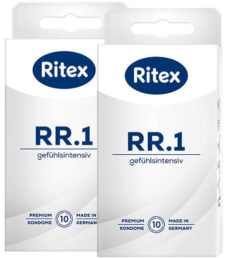Condooms kopen is een kwestie van vertrouwen. Vooral als het een ragfijn condoom moet zijn dat de liefde niet in de weg staat. Ritex RR.1 is een condoom dat nauwelijks op de huid te voelen is. Uitgerust met een zijdezacht oppervlak en een feel-actieve smeerfilm zijn de Ritex RR.1 condooms bijzonder huidvriendelijk - dit condoom voelt gewoon aangenaam aan! Dus liefde blijft zoals het moet zijn: Intensief, gevoelsgetrouw en natuurlijk. Waar staat RR.1 voor? Heb je je afgevraagd waar de letters RR voor staan in de productnaam van de Ritex classic RR.1 condooms? Sommigen vermoeden dat de initialen van de huidige directeur Robert Richter erachter zitten, anderen dachten eerder aan een afkorting voor Rock'n'Roll. Ritex zal het je vertellen! Sinds de jaren tachtig is het doorzichtige condoom met reservoir het best verkochte artikel van de firma Ritex, dat toen "Ritex Rubion" heette. Het artikel werd daarom "Ritex Rubions No. 1" genoemd. Deze naam sloeg zo goed aan dat Ritex hem sinds de jaren tachtig als productmerk gebruikt. Heel eenvoudig, is het niet?! Ook vandaag de dag is het Ritex RR.1 condoom nog een van de populairste producten in het Ritex assortiment. Het speciale wasproces geeft alle Ritex condooms een aangename geur. Ritex Ideal condooms zijn dermatologisch getest en hebben een zeer goede huidverdraagzaamheid. Alle Ritex condooms worden uitsluitend in Duitsland vervaardigd uit grondstoffen van de beste kwaliteit. ...