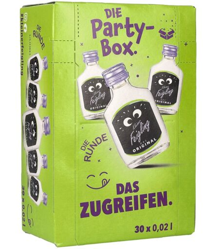 Het cultdrankje "Kleiner Feigling" van Duitse makelij roert de feeststemming al sinds 1992. De naam zegt het al. Little Coward is een combinatie van wodka van hoge kwaliteit en de fijnste vijg. Vooral de jongere generatie associeert de geest Drinkritueel: De ongeopende fles wordt in een bepaald ritme getikt met de dop op een tafel of op het meegeleverde klopbord. Vervolgens wordt de dop losgeschroefd, wordt het deksel op de neus gedrukt en wordt de fles met de opening tussen de tanden ge ...