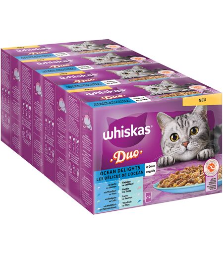 48x85g Duo Ocean Delights In Gelei Whiskas Kattenvoer Portiezakjes