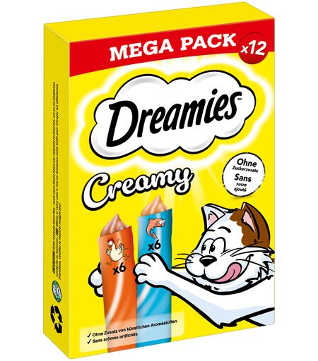 12 x 10 g Kip en Zalm Dreamies Creamy Snacks Kat