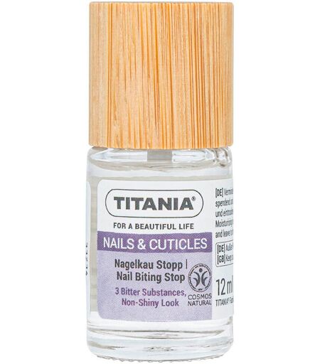 3 Bittere substantie. Tegen nagelbijten, werkt urenlang. TITANIA® Nail Bite Stop met denatoniumbenzoaat, eucalyptus en bloedsinaasappelolie vermindert de drang om nagels te bijten en houdt enkele uren aan, zelfs na het wassen van je handen. Hydraterende ingrediënten ondersteunen de hergroei van gezonde nagels. Nail Bite Stop is kleurloos en geen nagellak, dus het glanst niet. Gebruik: Dagelijks aanbrengen op ...