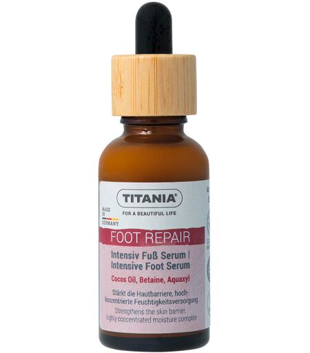 Versterkt de huidbarrière, zeer geconcentreerde hydratatie. Het rijke TITANIA® Intensive Foot Serum versterkt de huidbarrière. Een sterk geconcentreerd werkstoffencomplex met aquaxyl, glycerine en betaïne optimaliseert de vochttoevoer en maakt de huid merkbaar en langdurig zachter. ...