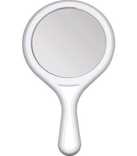 Normale spiegel en 5x vergroting. Handspiegel met handvat, diameter ca. 12,5 cm. ...