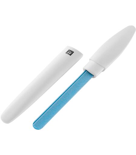 De premium keramische nagelvijl maakt nagels glad en verzegelt ze zonder ze op te ruwen. Het duurzame keramische vijlblad heeft een grove en een fijnkorrelige kant voor het inkorten en gladmaken van nagels en maakt een snelle, hygiënische reiniging mogelijk. De stevige, ergonomisch perfecte kunststof handgreep, de afgeronde punt en de groeven aan de zijkanten zorgen voor een uitstekend gebruiksgemak en geven de vingers een stevige grip op de vijl, zodat de nagels schoon in vorm kunnen worden gebracht. De keramische nagelvijl kan worden opgeborgen in een beschermhoes. Verkrijgbaar in zwart en wit. Toepassing: Keramische vijlen worden op precies dezelfde manier gebruikt als saffiervijlen. Regelmatig vijlen houdt de lengte en vorm van de nagels in stand. De vijl moet recht en voorzichtig op de nagel worden aangebracht en slechts in één richting worden geleid. Gebruik, indien beschikbaar, de zijde met de grove korrel om de nagels in te korten en vorm te geven, terwijl de zijde met de fijne korrel hoeken en randen glad maakt. Keramische vijlen verzegelen en polijsten de nagels ook tijdens het gladmaken. Breng na gebruik een nagelverzorgingsolie of -stick aan om te voorkomen dat broze nagels breken. ...
