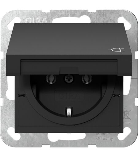 Gira System 55 wandcontactdoos RA m/deksel inbouw Mat zwart ...
