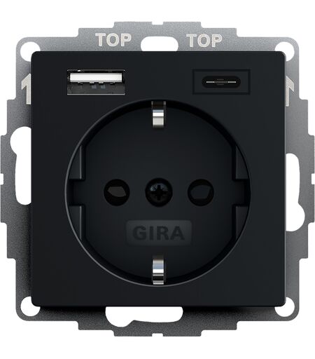Gira System 55 wandcontactdoos RA met USB-voeding A en C Mat zwart
