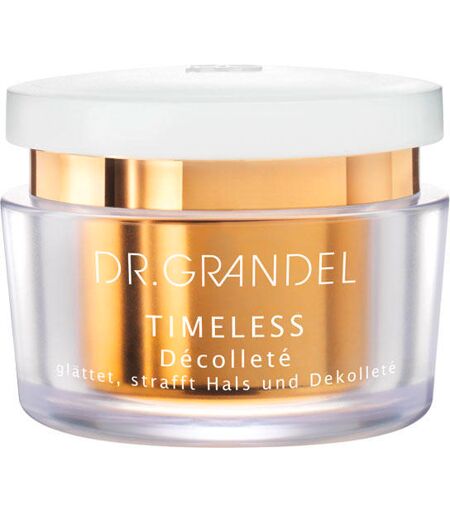 Speciale verzorging met "push-up" effect voor het décolleté en de hals. Timeless Décolleté wordt snel geabsorbeerd zonder vettig te zijn. De huid wordt van binnenuit voller, rimpels worden gladgestreken en de jeugdige stevigheid en elasticiteit worden behouden. Tijdloos, tijdloos mooi. Extract van beukenknoppenExtract van jonge beukenscheuten, rijk aan vitaminen, aminozuren, lipiden, mineralen en secundaire plantaardige stoffen (bijv. polyfenolen), die samen een indrukwekkend synergetisch effect ontwikkelen. De powerpacks met natuurlijke werkstoffen stimuleren de stofwisselingsprocessen van de huid, zoals het zuurstofgehalte in de cellen, de celvernieuwing en de natuurlijke beschermingsmechanismen. Op die manier verminderen ze op doeltreffende wijze vroegtijdige huidveroudering voor een gladde en stralende teint. Pseudo-CollageenBiotechnologisch collageenequivalent (glycoproteïne) uit gist om het vochtprofiel van de huid te optimaliseren. Voor een glad en jeugdig-fris uiterlijk. Mirre-extractExtract van de hars van de Indiase Commiphora mukul (ook wel valse mirre of guggulu-plant genoemd), met rimpelverminderende eigenschappen. Het extract kan door een enzymatische werking het volume van de huideigen lipidecellen vergroten en zo een plumping effect bereiken. De informatie over de werkzame bestanddelen heeft uitsluitend betrekking op de afzonderlijke stoffen die door DR worden gebruikt. GRANDEL naar de afzonderlijke gebruikte stoffen. Eigenschappen en werkingswijzen kunnen niet over de hele linie op producten of productgroepen worden overgebracht, omdat het effectieve spectrum van een product sterk afhankelijk is van de synergetische effecten, van alle basisingrediënten en ingrediënten. Toepassing: s Morgens en 's avonds aanbrengen op het décolleté en de hals. Tijdloos Cosmetica met beukenknopextract De jeugdige kracht van beukenknoppen in zeer actieve ingrediëntencombinaties minimaliseert lijntjes en rimpels en verbetert de celvernieuwing. De huid krijgt haar jeugdige uitstraling terug. Het anti-verouderingscosmeticum Timeless van DR. GRANDEL egaliseert en revitaliseert de huid. Tijdloos mooi. Professionele normen en wetenschappelijke methoden zorgen voor een cosmetica die gebaseerd is op een geoptimaliseerde natuur made in Germany. Dit geeft u het veilige gevoel dat u altijd het beste hebt gekozen. DR. GRANDEL Cosmetics staat voor perfectie die raakt. ...