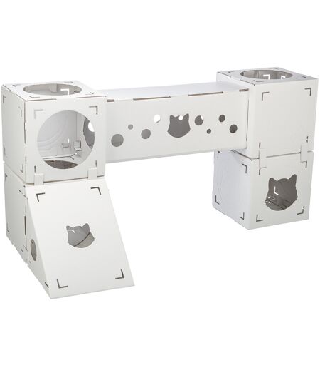 Milieuvriendelijk fort voor katten tot 8 kg, volledig uit gerecycled karton, uitgekiend inhaaksysteem, 4 blokken, 1 helling 1 tunnel, individueel vormbaar, volledig uitbreidbaar met dezelfde set. ...