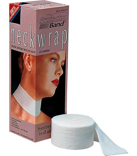 De Protectorband/Katoenwikkel "Neckwrap" is een beschermende nekwikkel die de nek en kleding schoon houdt. 5 rollen per 5m, Zelfklevend zonder perforatie ...