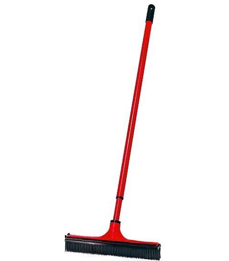 De V7 universele bezem met 690 V-vormige borstelharen pakt haar en vuil aan met technische finesse. Niets ontsnapt aan de V-borstels, noch op de gladde vloeren in de salon, noch op de paden, terrassen of zelfs tapijtvloeren. Door de elektrostatische lading van de borstelharen tijdens het vegen, trekt de V7 bezem haren, stof en vuil aan. De rubberen lip aan de achterkant van de bezem kan worden gebruikt om water en schuim weg te trekken. De V7 universele bezem wordt geleverd met een bijpassende gekleurde telescopische steel (uitschuifbaar tot een lengte van 1,50 m). ...