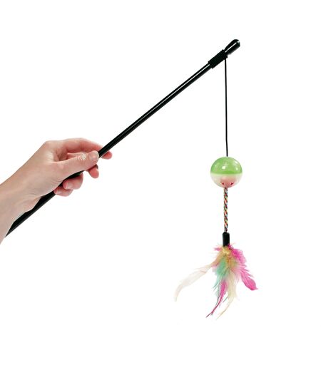 Speelhengel voor katten. Glow in the dark bal voor speelplezier in het donker. Bewegende kleurrijke veren. Lange staaf elastische rubberen koord voor wilde jachtspelletjes. Lengte: ca. 50 cm. ...