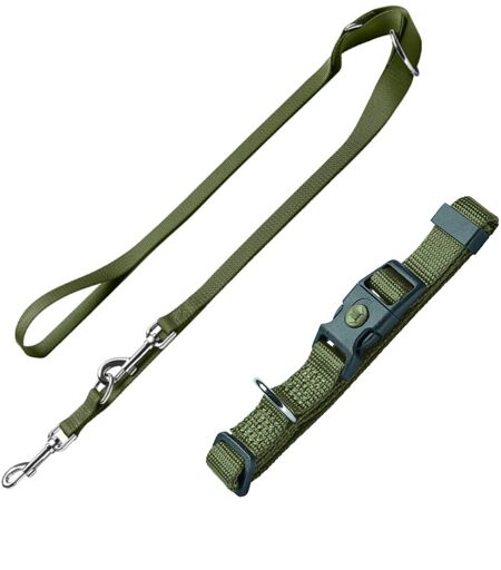 HUNTER Halsband London + Hondenlijn London, Olijfgroen - Vario Basic Maat M + Lijn 200cm/10mm Hond