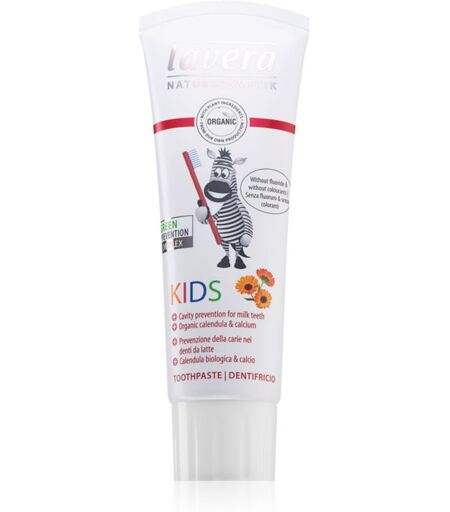 Lavera Kids, 75 ml, Kindertandpasta voor Kids, De tandpasta Lavera Kids bevat geen fluoriden en versterkt de tanden op natuurlijke wijze. De tandpasta is vooral geschikt voor gevoelige tanden en tandvlees. Kenmerken: voorkomt de vorming van tandplak, tandsteen en cariës zorgt voor zachte behandeling van de tanden en het tandvlees verfrist de ademhaling Ingrediënten: veganistisch product bevat geen fluoriden Hoe te gebruiken: Gebruik minimaal 2 keer per dag. Poets je tanden grondig minstens 2 minuten lang. ...