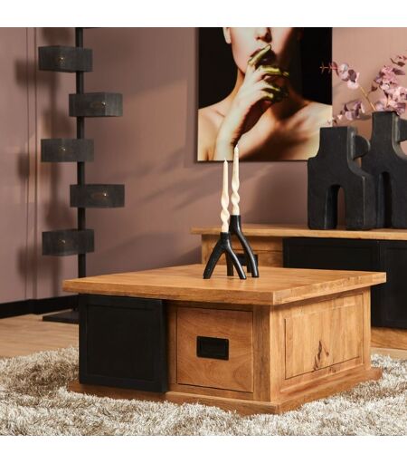 Deze stijlvolle salontafel van 80 cm is een praktisch meubelstuk dat iedere woonkamer een warme en natuurlijke uitstraling geeft. De tafel is voorzien van twee metalen schuifdeuren en houten laden. Met zijn vierkante ontwerp en compacte formaat is deze salontafel perfect voor zowel grote als kleine ruimtes. Gemaakt van duurzaam mangohout, biedt deze tafel een robuuste en langdurige kwaliteit. Een perfecte keuze voor een gezellige en functionele woonkamer.Deze tafel is verkrijgbaar in de... ...