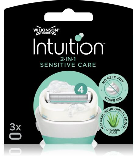 Wilkinson Sword Intuition Sensitive Care, 3 st, Scheermesjes voor Vrouwen , Haal je met je scheersysteem niet meer hetzelfde nauwkeurige resultaat als vroeger? Dan is het tijd om de mesjes te vervangen. De vervangmesjes Wilkinson Sword Intuition Sensitive Care garanderen een gelijkmatige, gladde scheerbeurt, net zoals bij het scheren met een nieuw scheermes. Kenmerken: de mesjes zorgen voor een gladde scheerbeurt geen scheergel nodig - bevochtiging is voldoende past zich flexibel aan elke curve aan Hoe te gebruiken: Bevochtig het scheerapparaat om een licht schuim te creëren. ...
