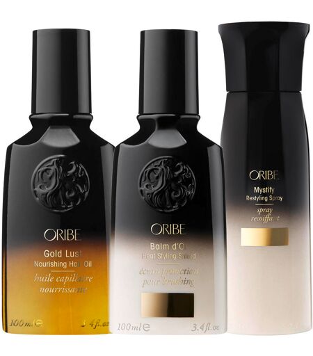 De Oribe Gold Lust Repair & Restore verzorgings- en stylingsset bestaat uit: Oribe Gold Lust Voedende Haarolie 100 mlOribe Balm d'Or Hitte Styling Shield 100 mlOribe Mystify Restyling Spray 175 ml Haarolie: Deze luxueuze Oribe Gold Lust Nourishing Hair Oil, verrijkt met arganextracten, wordt onmiddellijk door het haar geabsorbeerd en dringt diep door. Het haar wordt gemakkelijker te kammen en geparfumeerd. Als herstellende leave-in conditioner op vochtig haar zorgt de hoogwaardige olie voor extra glans en gezonde punten. Brengt het haar weer in model. De haarolie doet wonderen op droog, beschadigd en gekleurd haar. Zonder parabenen en natriumchloride. Toepassing: Breng de olie aan op al het vochtige haar voor het wassen of als een nachtbehandeling. Ook te gebruiken op vochtig haar als hittebeschermer vóór het föhnen, of op droog haar voor extra glans, bescherming tegen de zon en een verminderd pluiseffect. Styling Shield: Bescherm je haar tegen thermische beschadiging. Deze superlichte spray met door warmte geactiveerde polymeertechnologie, helende cassis-, sandelhout- en passievruchtolie beschermt en verzorgt poreuze delen van het haar. Het haar wordt verzegeld tijdens het föhnen, gladde stijlen of krullen glanzen met een strakke glans. Dermatologisch getest. Vrij van parabenen, sulfaten of natriumchloride. Toepassing: In vochtig haar verdelen vóór het föhnen of stylen met hete gereedschappen. Kan alleen of in combinatie met andere producten worden gebruikt. Spray: Deze spray verlengt en overbrugt perfect de tijd tussen de volgende haarwasbeurt. De haarstyling krijgt een nieuwe frisheid en de haarstructuur wordt tegelijkertijd verzorgd, versterkt en tegen hitte beschermd. Toepassing: Goed schudden voor gebruik en sprayen op haar dat de dag ervoor is gewassen. Föhn het haar in model of laat het aan de lucht drogen. Oribe Goed. Beter. Best. Oribe is een prijswinnend haarverzorgingsmerk dat wetenschap, technologie en tientallen jaren stylingervaring combineert om een nieuwe doorbraak in haarverzorging te creëren. ...